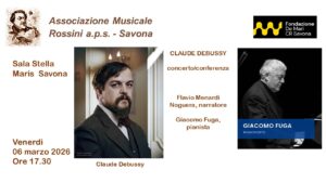 Associazione Musicale Rossini: concerto-conferenza “Debussy” con Flavio Menardi Noguera(narratore) e Giacomo Fuga (pianoforte)
