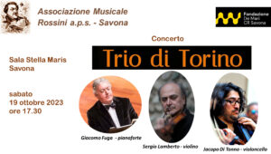 Associazione Musicale Rossini – Savona: Concerto “Trio di Torino” (Sergio Lamberto, violino – Jacopo Di Tonno, violoncello – Giacomo Fuga, pianoforte [Sala Stella Maris – Savona]