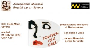 Associazione Rossini: presentazione dell’opera “POWDER HER FACE” di THOMAS ADES (commento di Jacopo Marchisio e Sergio Tortarolo) Sala Stella Maris – Savona